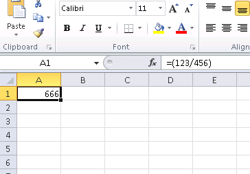 Make result of all divisions 666. Enter "=(123/456)" to check.